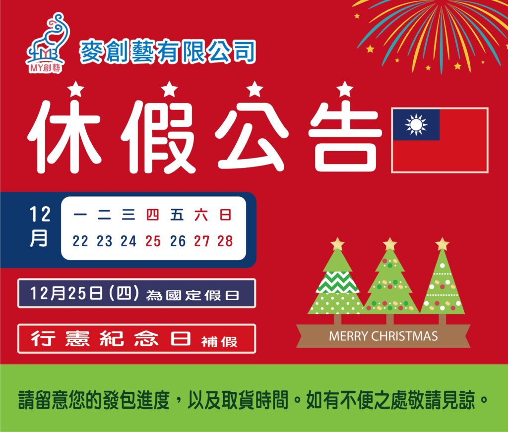 最新消息12月休假公告 Posted on 2025-12-242025-12-24 by 😁許廷禎-樹林JC、長君BNI-大圖輸出 24 12 月 😁許廷禎-樹林JC、長君BNI-大圖輸出 休假公告 1月休假公告